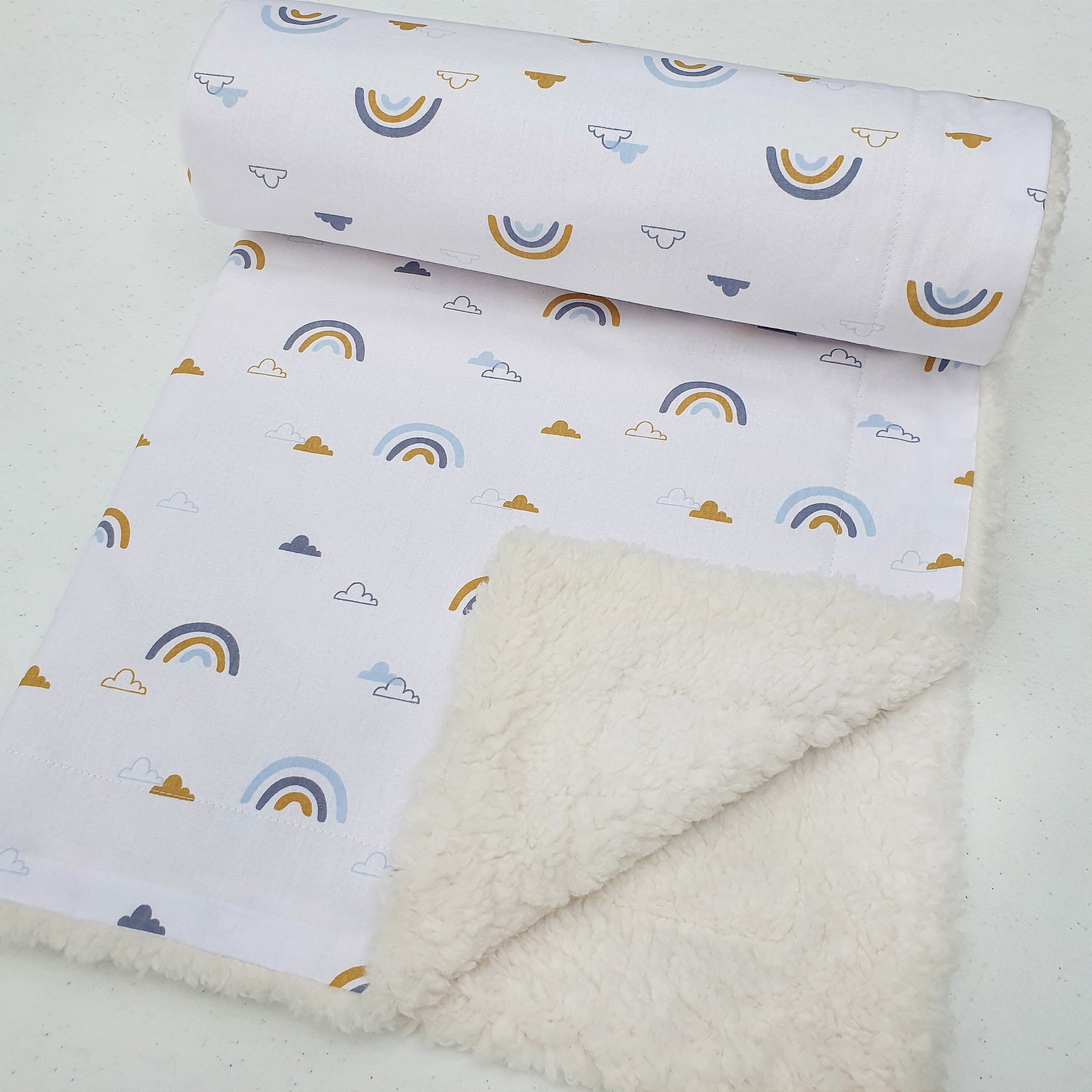 A estampa de Céu é super fofa e divertida, e o carneirinho na parte interior da mantinha dá um toque aconchegante que seu bebê vai adorar.